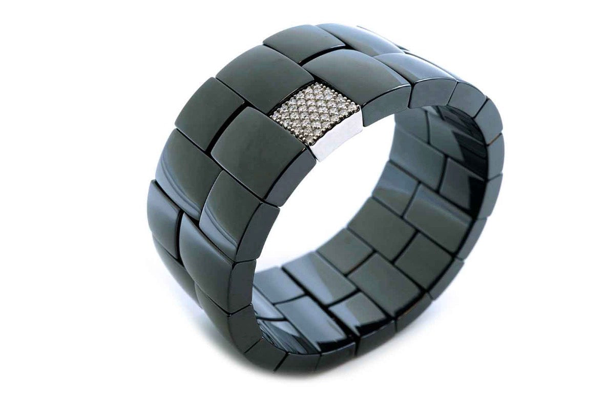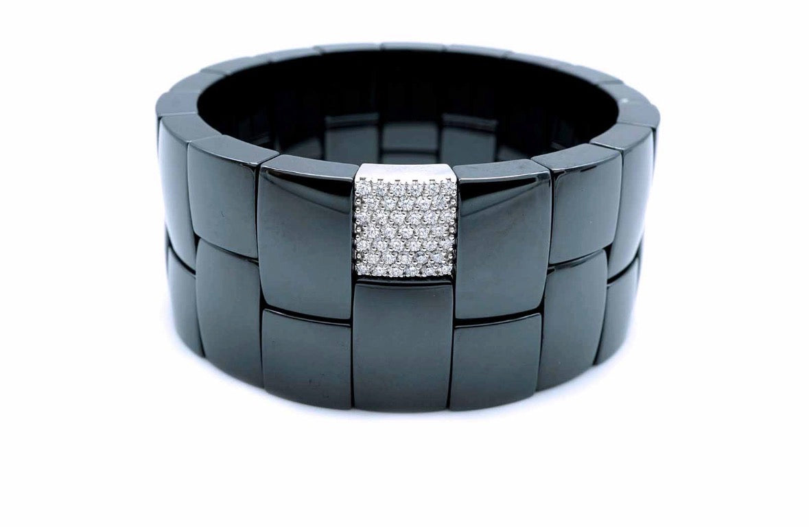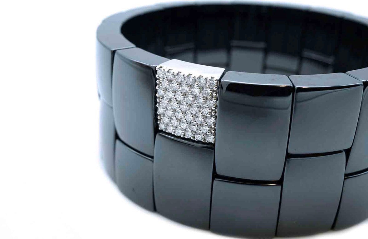 Bracciale elasticizzato in ceramica nera lucida con oro bianco 18kt e diamanti ct0,67