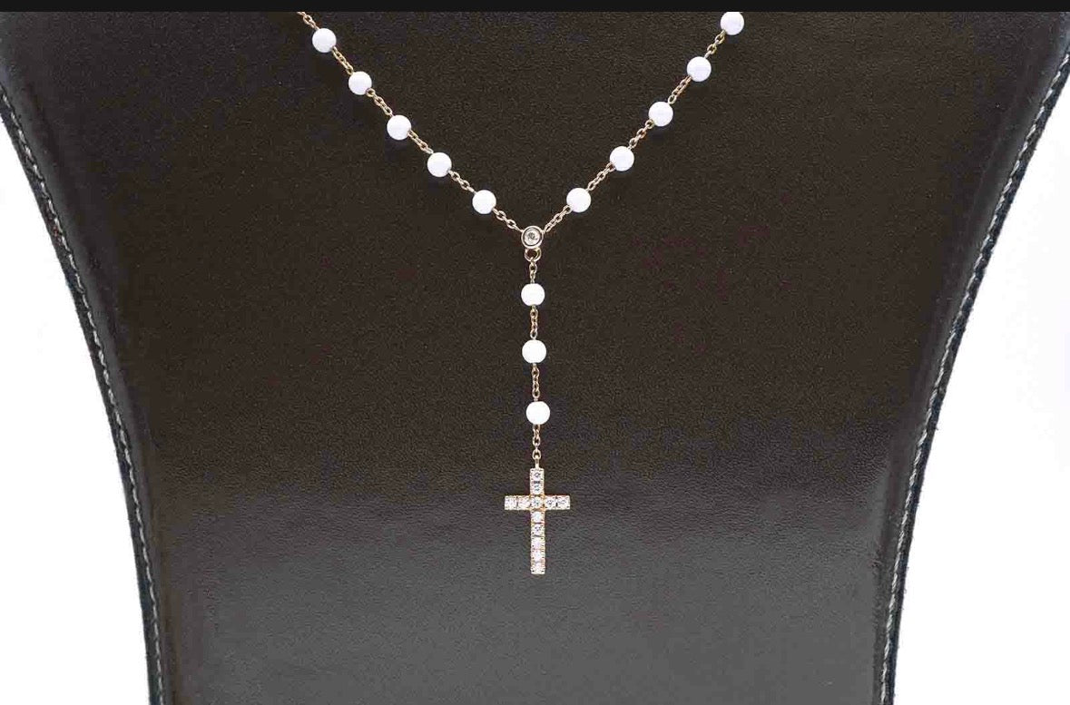 Collana oro rosa 18kt, diamanti ct0,35, 46cm
