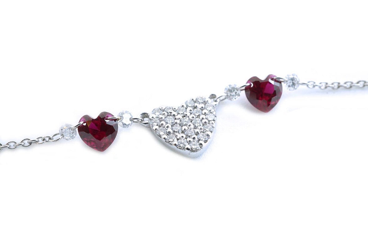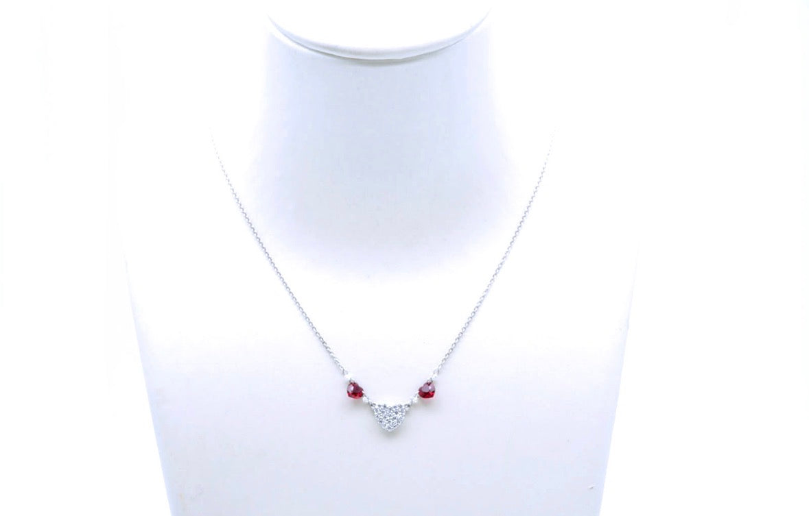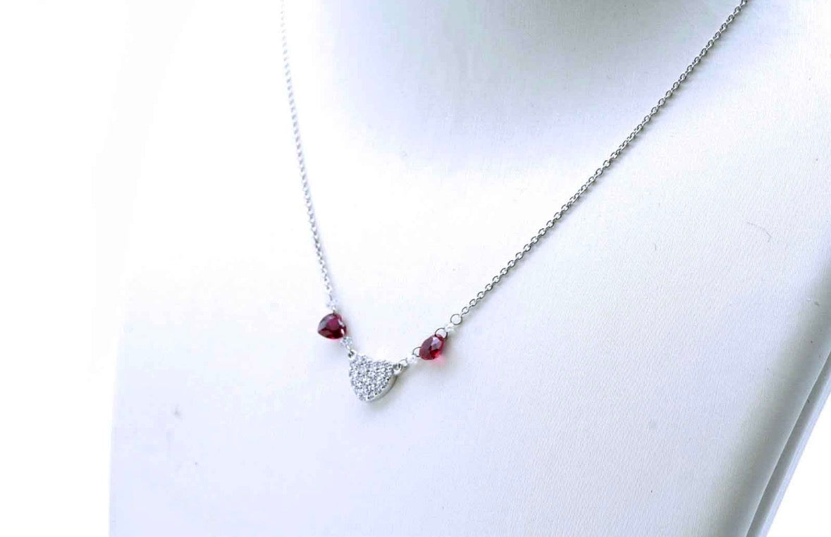 Collana oro bianco 18kt, diamanti ct0,26 e rubini ct0,74, 42cm