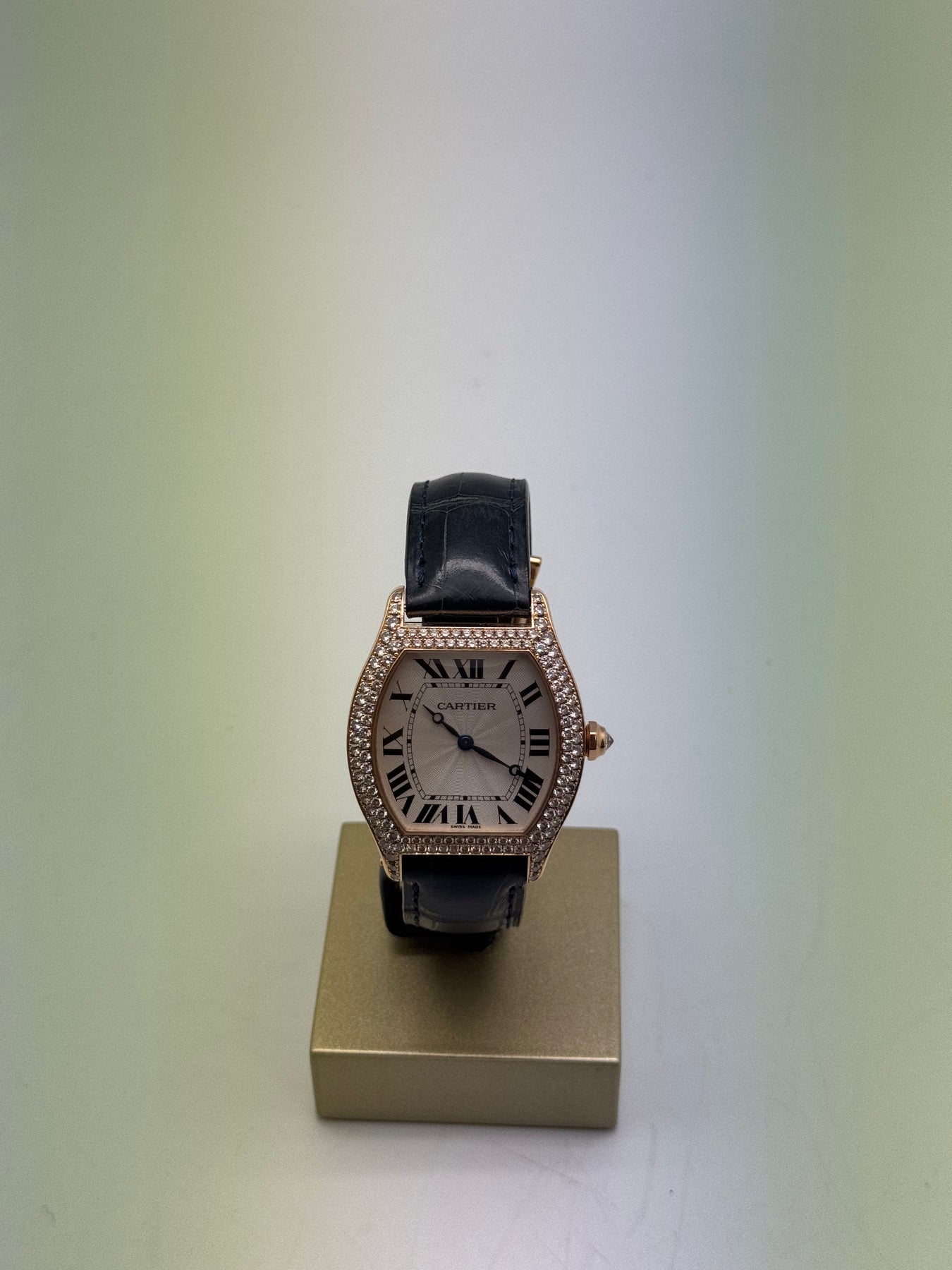 Cartier Tortue in perfette condizioni, cassa oro rosa e diamanti, con scatola e garanzia originale
