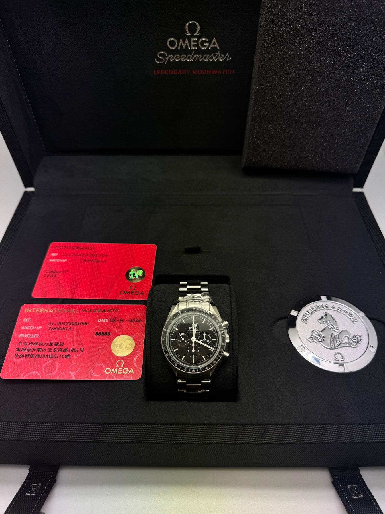 SPEEDMASTER anno 2022, mai indossato,referenza 31130423001006 (vetro e fondello zaffiro) con scatola e garanzia originale